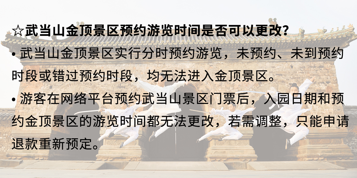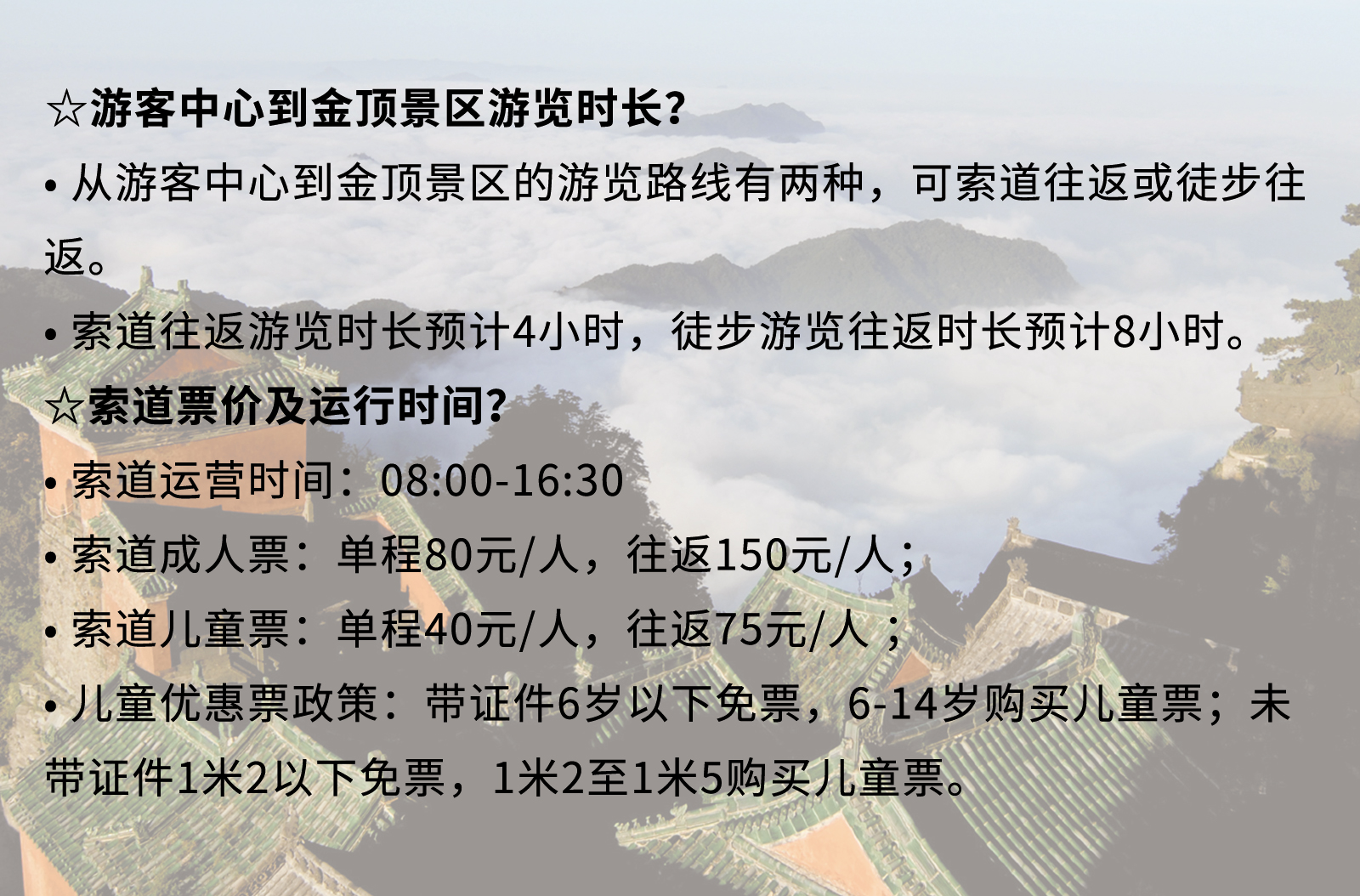 1、门票包含:含武当山门票(含金顶和紫霄宫)、景区观光车票、旅游保险;不含索道票费用