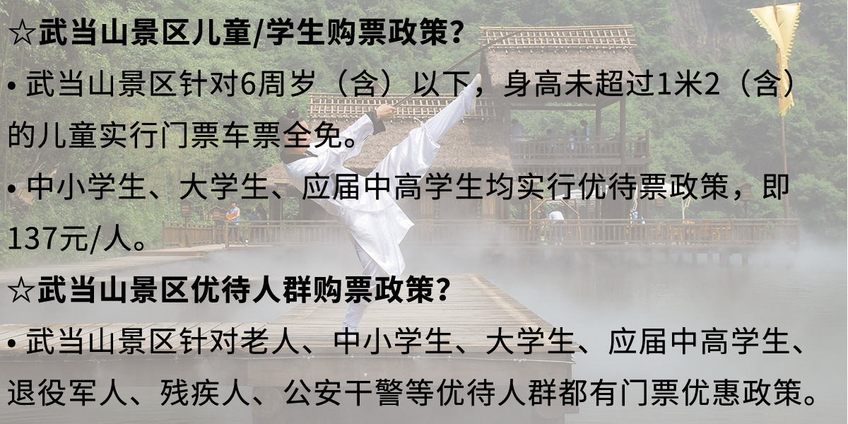 适用人群:(军队离退体干部、消防救援人员、现役军人;盲人、双下肢残疾人和重度智力残疾、精神病残疾人陪护(限1人);道教教职人员;援鄂医疗队员及3名亲属(灵秀湖北感恩卡);武当人才卡金卡、银卡用户(可携1-3名陪同)、楚才卡用户(可携1-3名陪同)。