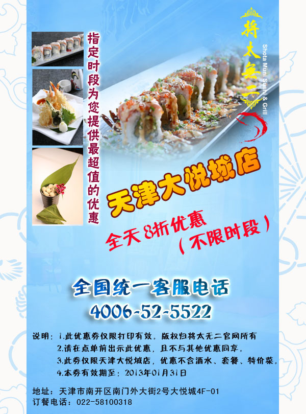 使用范围:仅限天津大悦城店 使用说明: 使 |