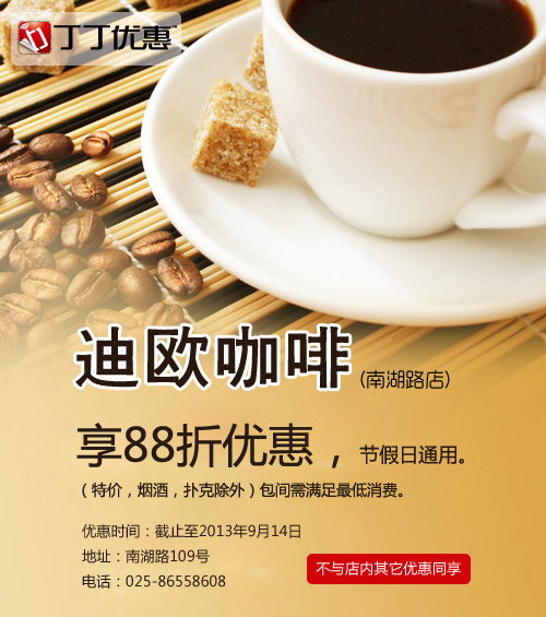 迪欧咖啡优惠券(南京迪欧咖啡优惠券):消费享88折优惠发布来源:优惠券,电子优惠券