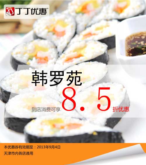 韩罗苑优惠券(天津韩罗苑优惠券):到店消费可享8.5折优惠网址:http://www.ding8.com/youhuiquan.asp?Kid=3734&admin_id=&ID=31641&fw=
